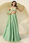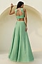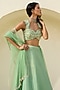 Featuring a green polka woven lehenga in raw silk, tissue brocade and net base. It is paired with a blouse having sequins and glass bead embroidery, including a tulle dupatta. Accentuate it with dangler earrings and block heels for weddings or mehendi ceremonies.