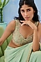 Featuring a green pre-draped saree in raw silk and tissue silk base with glass bead embellishment. It is paired with a sweetheart neckline blouse having sequins, pearl and glass bead embroidery. Accentuate it with dangler earrings and block heels for weddings or mehendi ceremonies.