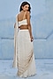 Featuring an ivory pre-draped saree in raw silk and georgette base with sequins embellishment. It is paired with a blouse having glass bead and pearl embroidery. Accentuate it with dangler earrings and block heels for weddings or engagement ceremonies.