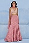 Featuring a mauve pink lehenga in raw silk, georgette and net base with floral sequins embellishments. It is paired with a blouse having sequins and glass bead embroidery, including a tulle dupatta. Accentuate it with dangler earrings and block heels for weddings or sangeet ceremonies.