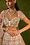 Chamee and Palak features a multi-colored lehenga in raw silk base with sequins, thread and pearl embroidery. It is paired with a floral embellished blouse and a soft tulle dupatta. Accentuate it with kundan polki jewellery, a floral hairdo and block heels for a wedding, sangeet or engagement ceremony.
