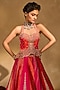 Chamee and Palak features an orange and pink kalidar lehenga in tissue jamawar base with zari embroidery. It is paired with a dupion silk encrusted halter blouse having zari, sequins and glass beads embroidery, including a pink net dupatta with applique embroidery. Accentuate it with kundan polki jewellery, a floral hairdo and block heels for a wedding, sangeet or engagement ceremony.