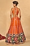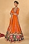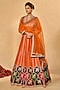 Orange Raw Silk Palm Applique Embroidered Lehenga Set