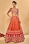 Orange & Red Raw Silk Zardosi Embroidered Lehenga Set
