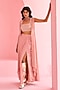 Featuring a pink jacket in raw silk and georgette base with embellishment. It is paired with a draped skirt and a top having pearl and zardosi embroidery. Accentuate it with dangler earrings and heels for engagement ceremonies.