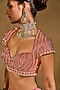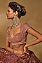 Chamee and Palak features a mauve pink and orange lehenga in raw silk base with glass beads, stone, pearl, zardosi and zari embroidery. It is paired with an embroidered blouse having a sweetheart neckline, cap sleeves and motif embroidery, including a pink tulle encrusted dupatta. Accentuate it with kundan polki jewellery, a floral hairdo and block heels for a wedding, sangeet or engagement ceremony.