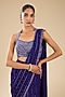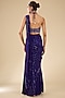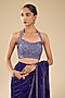 Featuring a purple pre-stitched saree in georgette base. It is paired with a raw silk blouse having a halter neckline and glass beads embroidery Accentuate it with statement earrings and metallic heels for a stylish ensemble, ideal for weddings or sangeet celebrations.