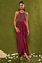Chamee and Palak features a red wine cascade cowl dress in raw silk and georgette base with a halter-neckline and glass beads embellishments. Accentuate it with zircon dangler earrings and metallic heels for a cocktail, sangeet or reception ceremony.
