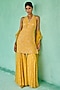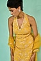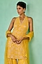 Featuring a yellow halter neck kurta in georgette and net base with floral sequins and pearl embroidery. It is paired with georgette sequins embellished sharara pants and a tulle dupatta. Accentuate it with dangler earrings and block heels for festive occasions.
