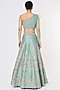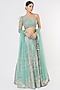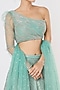 Featuring a gracious mint green lehenga in blended silk and net base, an ideal and aesthetically designed choice for the Indian look. This chic lehenga set has the ageless craftsmanship of floral chevron work. It includes a matching one-shoulder blouse and a tulle dupatta to complete the bridal look. The set is crafted with the finest materials and will accentuate your wedding or engagement ceremony..