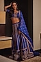 Featuring a gracious navy blue lehenga in dupion silk base, an ideal and aesthetically designed choice for the Indian look. This chic lehenga set has the ageless craftsmanship of motif work. It includes a matching blouse having elbow sleeves and a net dupatta to complete the bridal look. The set is crafted with the finest materials and will accentuate your wedding or engagement ceremony..