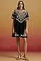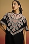 Featuring a black mini dress in matka silk base with applique, thread, bead work and cape detail. Accentuate it with statement earrings and elegant heels for a stylish ensemble, ideal for cocktail evenings.