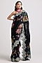 Featuring a black saree in silk organza base with cutwork, beads and thread work. Style it with a top, statement jewellery and heels for cocktail parties.