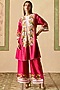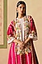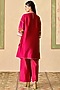 Featuring a fuchsia and ivory short kuta in chanderi base with chain stitch detail, thread and beads work. It is paired with pants having threadwork. Accentuate it with dangler earrings and heels for a complete look.