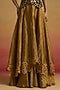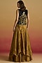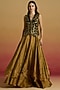 Featuring a gold layered lehenga in tissue base with tonal cutwork. Accentuate it with top, statement earrings and elegant heels for a stylish ensemble, ideal for evening soirees.