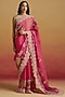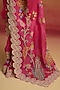 Featuring a hot pink saree in silk organza base with cord, thread and beadwork. It is paired with a plain blouse fabric. Accentuate it with blouse, statement earrings and elegant heels for a stylish ensemble, ideal for festive occasions or wedding ceremonies.