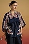 Featuring an indigo blue shirt in chanderi and silk organza base with paisley thread and bead work. Accentuate it with pants, statement earrings and elegant heels for a stylish ensemble, ideal for evening soirees.