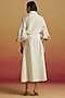 Featuring an ivory button-down skirt in chanderi base with 3D floral applique work. Accentuate it with top, statement earrings and elegant heels for a stylish ensemble, ideal for evening soirees.