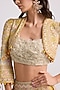 Featuring an ivory bolero jacket in chanderi base with cord and beads work. Style it with a skirt, top, statement jewellery and heels for weddings.
