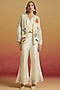 Featuring an ivory bell-bottom pants in chanderi base with cord and bead work. Accentuate it with jacket, statement earrings and elegant heels for a stylish ensemble, ideal for evening soirees.
