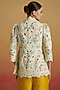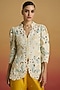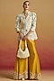 Featuring an ivory peplum jacket in chanderi base with cord and bead work. Accentuate it with pants, statement earrings and elegant heels for a stylish ensemble, ideal for evening soirees.
