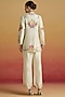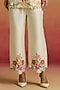 Featuring an ivory pants in chanderi base with floral thread and beadwork. Accentuate it with jacket, statement earrings and elegant heels for a stylish ensemble, ideal for evening soirees.