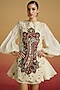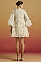 Featuring an ivory layered dress in chanderi and silk organza base with applique and cutwork. Accentuate it with statement earrings and elegant heels for a stylish ensemble, ideal for evening soirees.