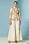 Featuring ivory pleated flared pants in chanderi base with thread and beadwork. Style it with jacket, stud earrings, and heels for an elegant look. Perfect for evening events, semi-formal gatherings and upscale celebrations.