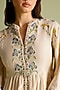 Featuring an ivory midi dress in chanderi base with mosaic thread, bead and cutwork. Accentuate it with statement earrings and heels for a brunch or formal events.