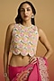 Featuring an ivory crop top in chanderi base with scallop thread and bead work. Accentuate it with saree, statement earrings and elegant heels for a stylish ensemble, ideal for festive occasions or wedding ceremonies.