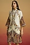 Featuring an ivory and plum dress in chanderi base with thread and bead work, including color blocking. Accentuate it with statement earrings and elegant heels for a stylish ensemble, ideal for cocktail evenings.