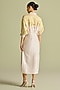 Featuring an ivory and yellow kimono dress in chanderi base with checkered applique and threadwork. Accentuate it with statement earrings and heels for a brunch or formal events.