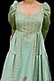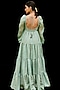 Featuring a jade green maxi dress in chanderi base with tiers and embroidery. This contains only one piece.