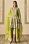 Olive Green Chanderi Thread Work Flared Short Kurta Set