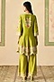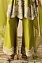 Featuring an olive green flared short kurta in chanderi base with cord and thread work. It is paired with bell-bottom pants having beads work. Style it with statement earrings and block heels for festive gatherings or sangeet or mehendi ceremony.