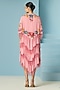 Featuring a pink tiered dress in silk georgette base with floral beadwork and fringe details. Accentuate it with stud earrings, a sling bag and elegant heels for a stylish ensemble, ideal for evening events and upscale celebrations.