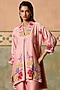Rose Pink Chanderi Thread Work Short Kurta Set