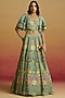 Featuring a sage green bustier in chanderi base with multi-colored thread and bead work, including organza sleeves. Accentuate it with lehenga, statement earrings and elegant heels for a stylish ensemble, ideal for festive occasions or wedding ceremonies.