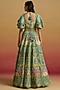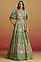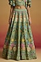 Featuring a sage green lehenga in chanderi base with multi-colored thread and bead work. Accentuate it with top, statement earrings and elegant heels for a stylish ensemble, ideal for festive occasions or wedding ceremonies.