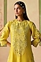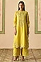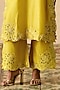 Featuring a yellow kurta in chanderi base with 3D floral applique, beads and cutwork. It is paired with cutwork pants. Style it with statement earrings and block heels for festive gatherings or sangeet or mehendi ceremony.