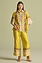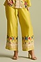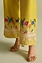 Featuring yellow pants in chanderi base with chain-stitch, applique, beads and cutwork detailing. Accentuate it with a shirt, statement earrings and heels for a brunch or formal events.