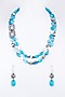 Featuring a white finish layered necklace studded with blue beads, set in brass. It is paired with a matching pair of earrings.