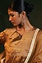 Featuring a pair of gold finish dangler earrings with zari work, set in brass. These earrings add a touch of sophistication and individuality to any ensemble.