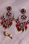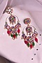 Featuring a pair of handmade chandbaali earrings studded with pearls, mirror and multi-colored embroidery, set in brass.