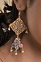 Featuring a pair of handmade dangler earrings studded with mirror and multi-colored embroidery, set in brass.