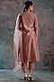Featuring a berry mauve round yoke kurta in chanderi base with cutwork detailing and swarovski embellishments. It is paired with matching straight pants in cotton base and an organza dupatta.