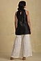 Featuring a black high-low kurta in chanderi base with mirror embroidery and layers. It is paired with contrasting white cotton sharara pants and a organza dupatta having sequins embellishments.