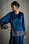 Featuring a blue top in velvet base with heavy embroidery. It is paired with flared palazzo pants. Style it with soft curls, minimal jewellery, and delicate heels for a complete look. Perfect for festive occasion, sangeet and daytime weddings.