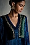 Featuring a blue midi dress in velvet base with contrasting yoke and sequin embroidery. Style it with soft curls, minimal jewellery, and delicate heels for a complete look. Style it with a bag to complete the look, a perfect blend of tradition and modern sophistication.