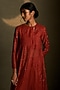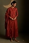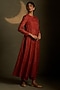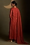 Featuring a crimson long anarkali in mul chanderi base and voil base with star motifs embroidery. It is paired with palazzo pants and a mul chanderi dupatta. Accentuate it with dangler earrings and heels for festive occasions.